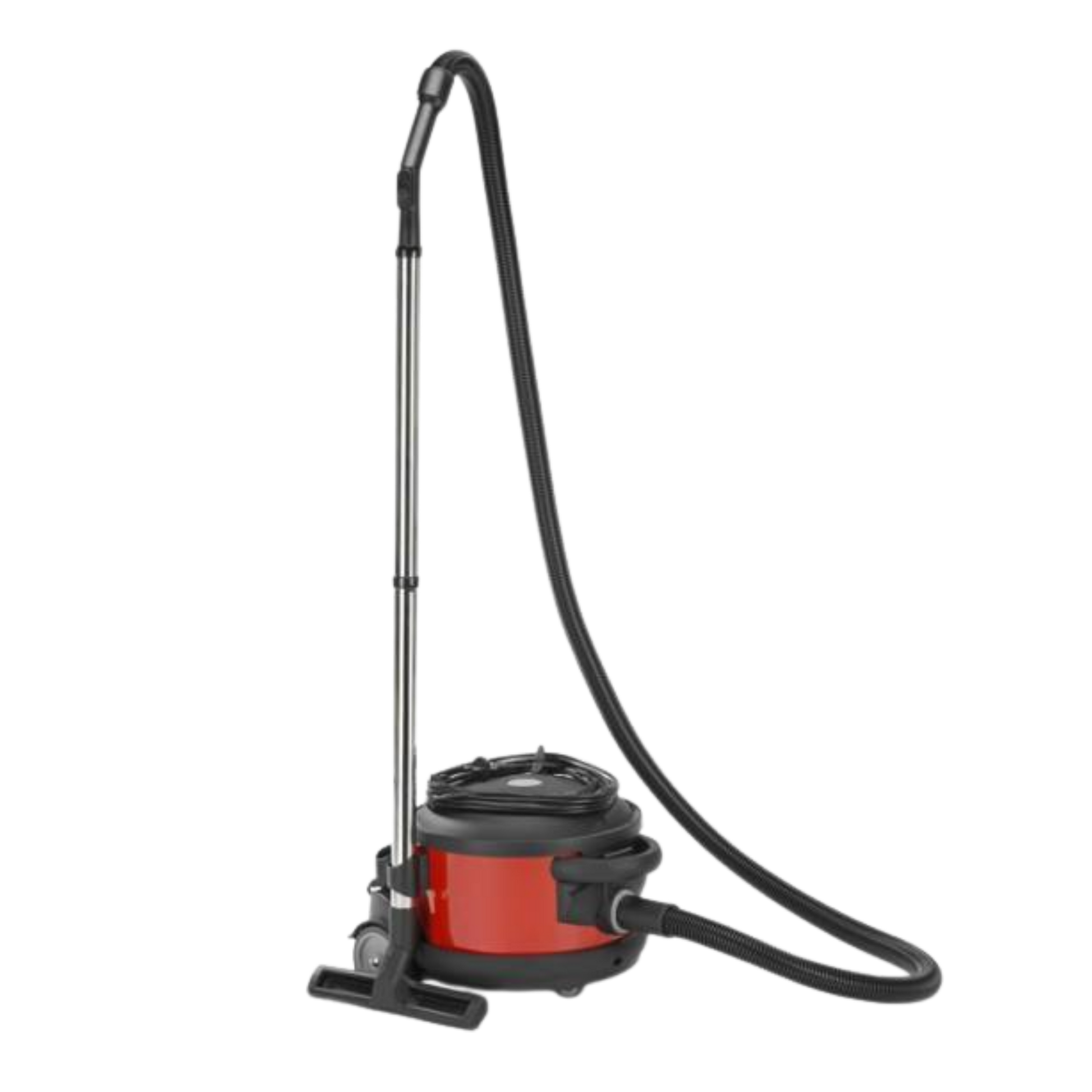 The vacuum cleaner is equipped with a practical cable rewind system integrated in the head and a HEPA filter for improved air filtration. Its shock-resistant metal container ensures durability, while the combination of two fixed rear wheels and one swivel front wheel provides excellent stability and manoeuvrability. The ergonomic foot-operated on/off switch allows comfortable and hygienic operation.