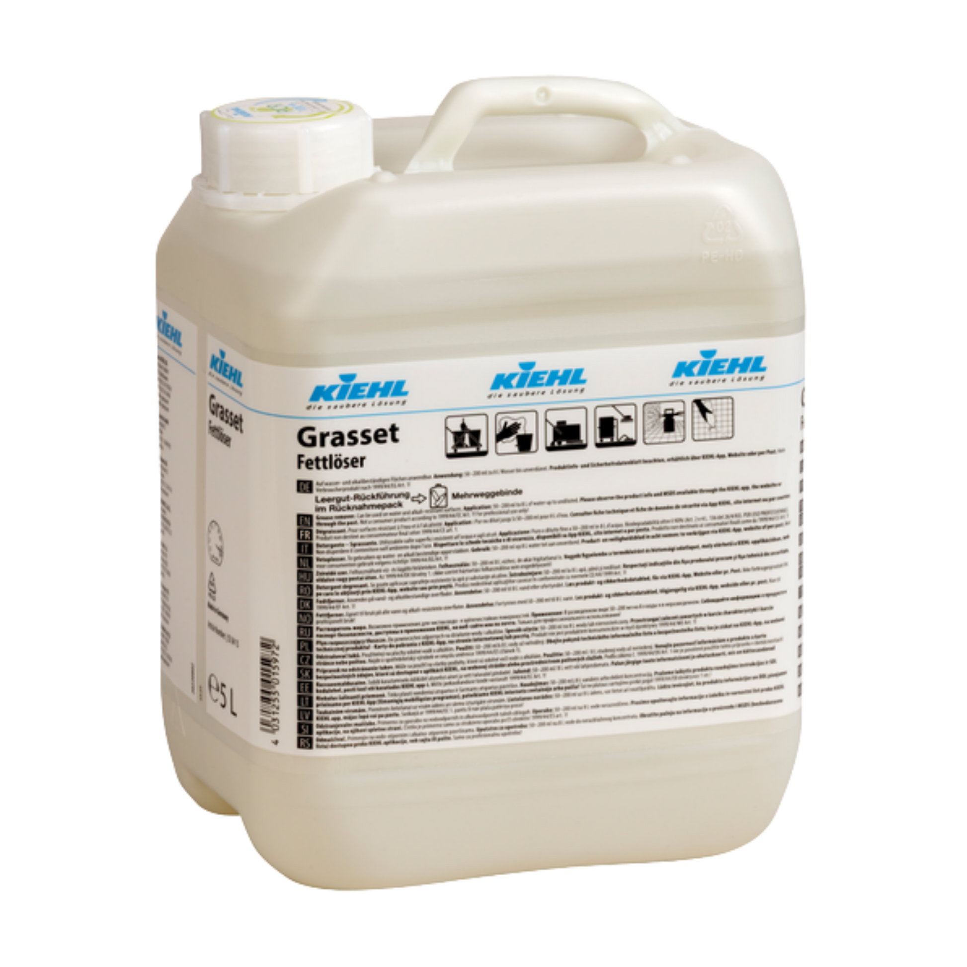 Kiehl Grasset is a fast-acting alkaline grease remover developed for professional cleaning in the food industry. It effectively removes grease, oil and protein residues of vegetable and animal origin from floors, walls and work surfaces. The formula can be used with cold or warm water and provides corrosion protection, making it suitable for sensitive materials such as anodised aluminium.